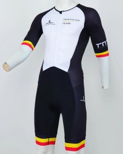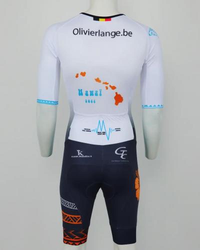- son tissu est relativement similaire à celui d’un maillot de bain, ce qui permet un séchage rapide, une liberté de mouvement incroyable (pour les trois épreuves) et un confort sans pareil ;